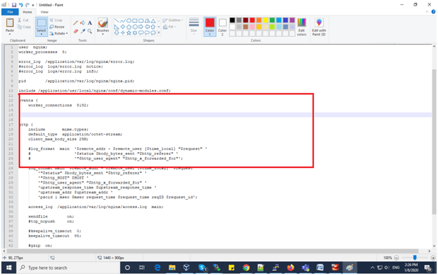 Server Context/Server Block: Server Context is used to define Virtual Host. A major prerequisite for using Server context is to add an events context before it. It must be noted that even if the events context is left empty, the context must be present in the nginx configuration file for the conf file to be valid as in the below snapshot.